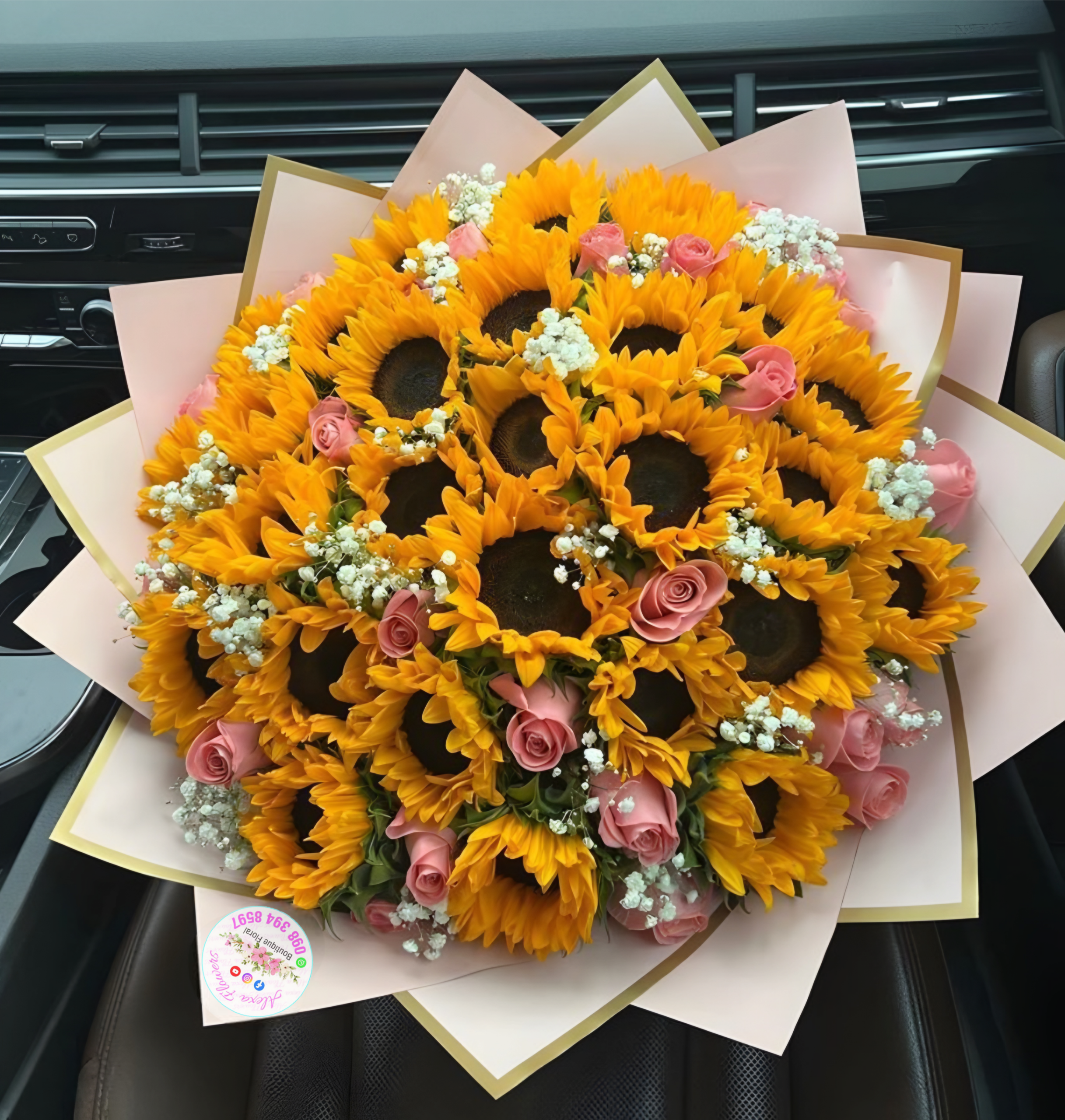 Elegante Bouquet de 30 girasoles y 24 Rosas